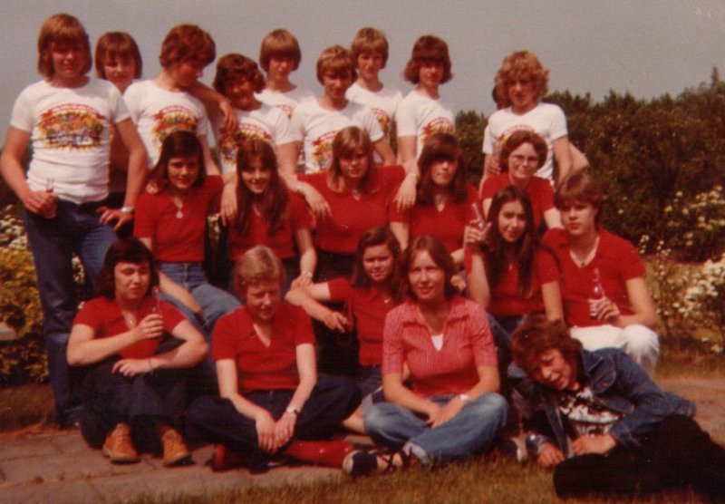 Hanne - Mona - Ida - Annette - Jette Bagest fra højre: Per H - Hans Henrik - Preben - Jan - Per L - Henrik - Bent - Jens - Knud Aage (klasselærer) |