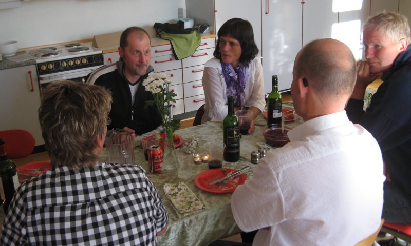 | ... Per H ser temmelig bister ud (ligner ham slet ikke) ... årsagen kendes ikke, måske er han utilfreds med sin borddame, eller noget som Bent har sagt, eller også er der en sene i kødet, han ikke kan få bugt med (så er det nok ikke fra en af hans præmie-køer ...) ... men man ser jo tydeligt, at det var en seriøs fest ! |