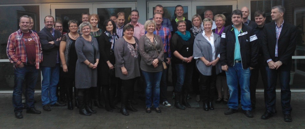 | Opstilling til klassebillede ved hovedindgangen - alle lignede (næsten) sig selv fra dengang ... |