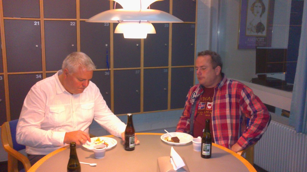 om, var det på høje tid at gå ned på kroen og fortsætte festen med mad,
