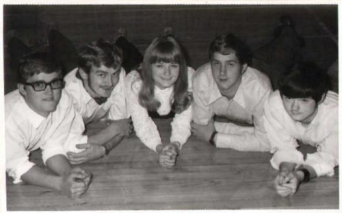 | Orkestret spillede første gang offentligt i efteråret 1966 (med Anne Grethe Trangbæk som sangerinde) i det gamle Hvolris forsamlingshus (og DET var bestemt ikke særlig stort). |